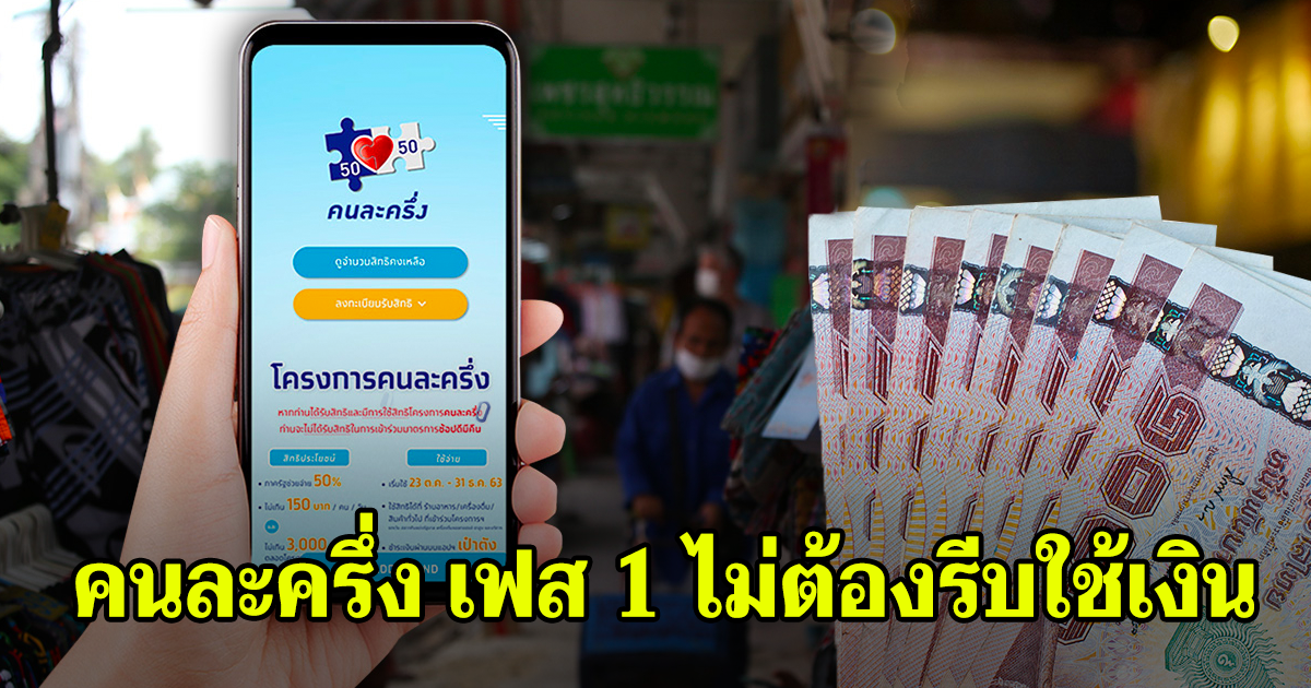 อนุมัติแล้ว คนละครึ่ง รอบเก็บตก เปิดให้ประชาชนมาลงทะเบียน 1.34 ล้านสิทธิ กระทรวงการคลังจะเริ่มให้ลงทะเบียน ในวันที่ 20. คนละครึ่งรอบ 2 ลงทะเบียนรับเงิน 3,000 บาท กำหนดโควตาแค่ 2.3 ล้านคน ขานรับแคมเปญ 11.11 ถูกกว่านี้ มาตรการ คนละครึ่งเฟส 3 จะให้เงินช่วยเหลือในการใช้จ่ายคนละครึ่ง คนละ 3,000 บาท โควต้า 31 ล้านคน ใช้จ่ายวันละไม่เกิน 150 บาท คิดเป็นวงเงินงบประมาณ. เช็คสิทธิคนละครึ่งรอบ 3 รับเลย 3พันบาท เพิ่มระยะเวลาอีก 6 เดือน ครม. รัฐเปิดลงทะเบียนโครงการคนละครึ่ง เฟส 3 ภายในวันที่ 14 มิ.ย.
